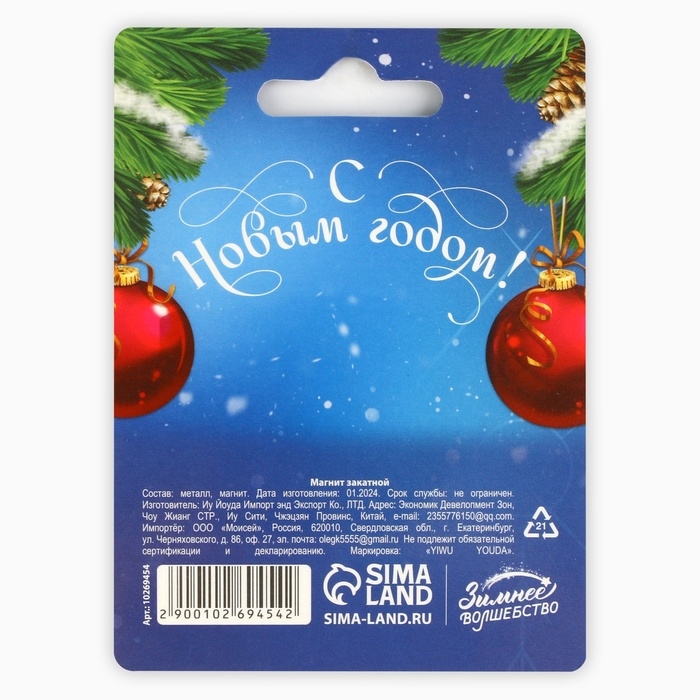 Магнит новогодний закатной «Новый год: Тепла и уюта», диам. 5 см