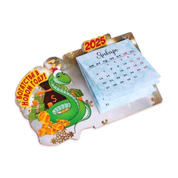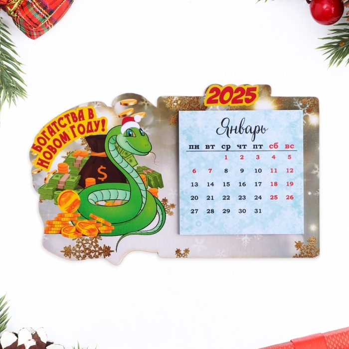 Магнит новогодний, змея, с календарем "Богатства!" символ года, монеты
