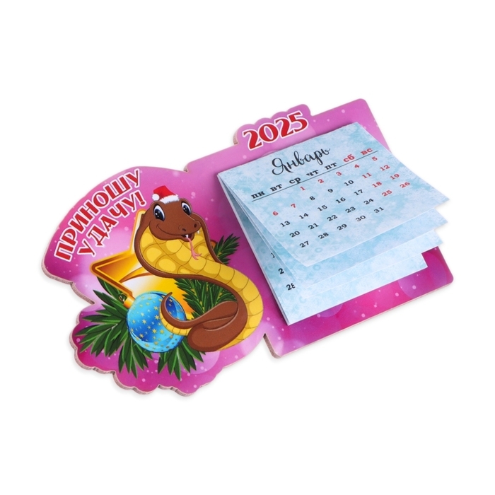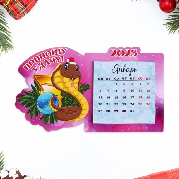Магнит новогодний, змея, с календарем "Приношу удачу!" символ года, шар