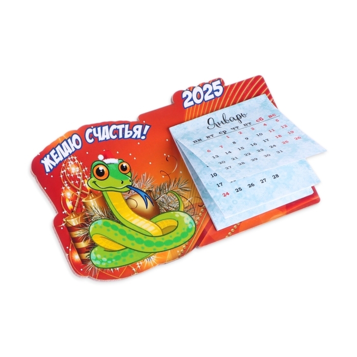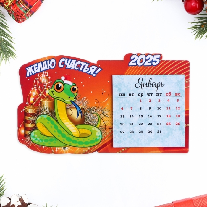 Магнит новогодний, змея, с календарем "Желаю счастья!" символ года, свечи