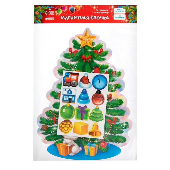 Поместите ёлочку на холодильник или играйте на столе. Попросите малыша украсить ёлку, посчитать игрушки. Используйте магнитные элементы в сюжетно-ролевых играх.