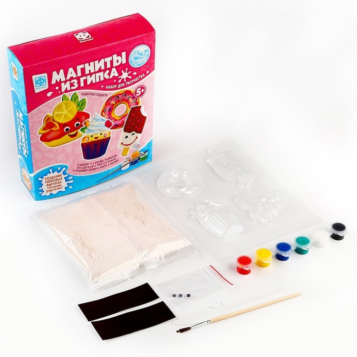 Магниты из гипса 4 в 1 «Радостные сладости» позволяют ребёнку создать уникальные украшения для интерьера или оригинальные подарки для родных и друзей.