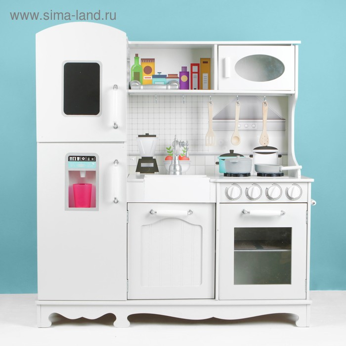 Игровой модуль-кухня — это яркая имитация аксессуаров для юных поваров, которая подходит для сюжетных игр. Ребёнок откроет свой ресторан или накормит кукольную семью. Кухонная утварь разработана специально для детских ручек, поэтому малышу будет удобно и легко ей пользоваться.