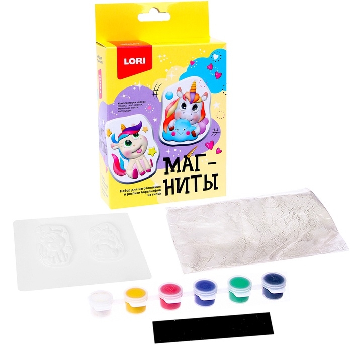 Процесс создания наборов для творчества «Магниты из гипса» — интересное и увлекательное занятие. Гипс — это гипоаллергенный материал, который легко принимает любые формы и хорошо покрывается краской. Сделать красивую фигурку не составит труда, а весь процесс принесёт пользу для развития малыша.