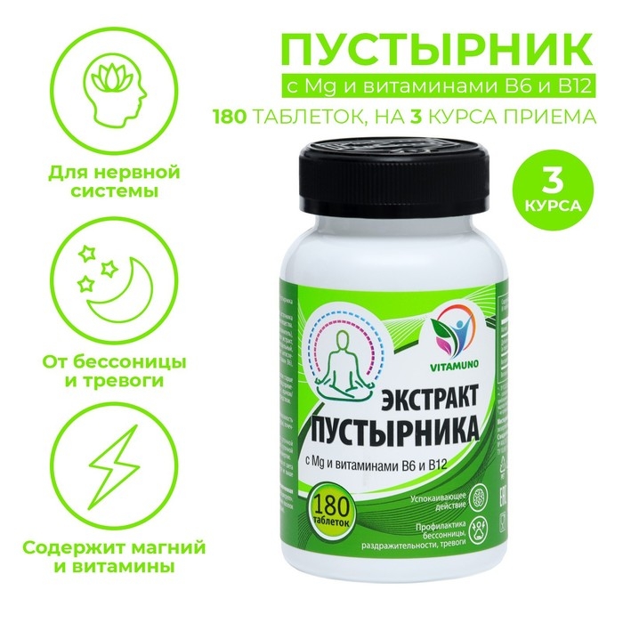 Магний В6 и В12 с экстрактом пустырника 180 таблеток по 0,5 г