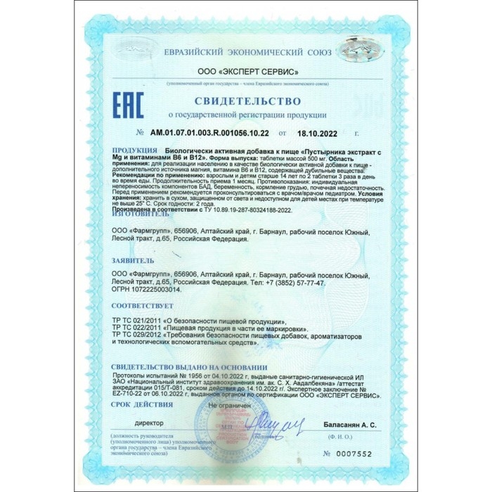 Состав: Целлюлоза микрокристаллическая (наполнитель), магния бисглицинат, пустырника пятилопастного экстракт, тальк (агент антислеживающий), крахмал картофельный, кальциевая соль стеариновой кислоты (агент антислеживающий), пиридоксина гидрохлорид (витамин В6), цианокобаламин (Витамин В12).