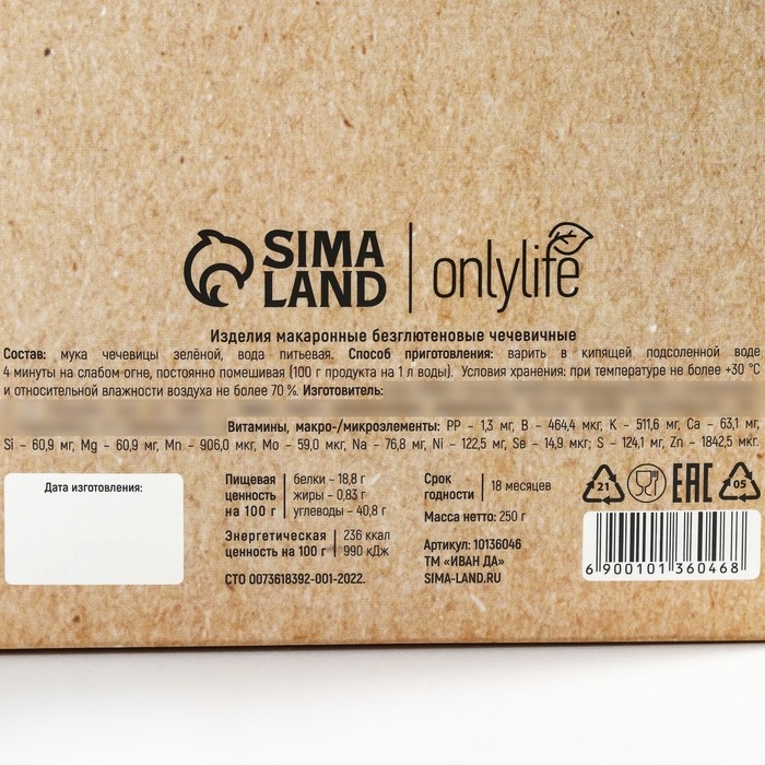 Макароны чечевичные безглютеновые, паста, 250 г.