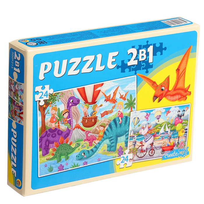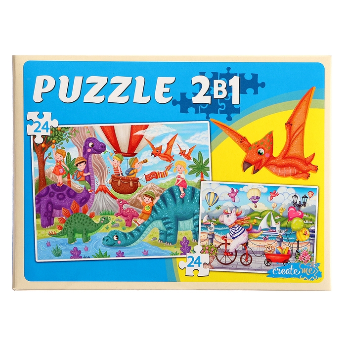 Макси-пазлы 2 в 1 «Единороги + динозавры №4», 24 и 24 элементов