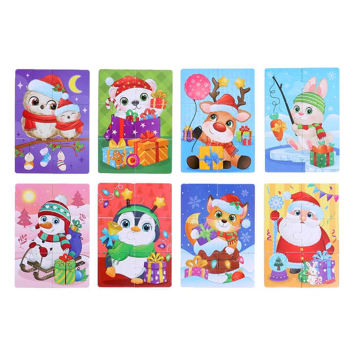 Макси-пазлы 8 в 1 «Ждут зверята Новый год», 48 деталей