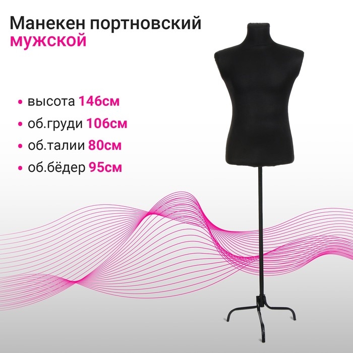 Манекен портновский на стойке «Мужской» 44-48, 106×80×95 см цвет чёрный