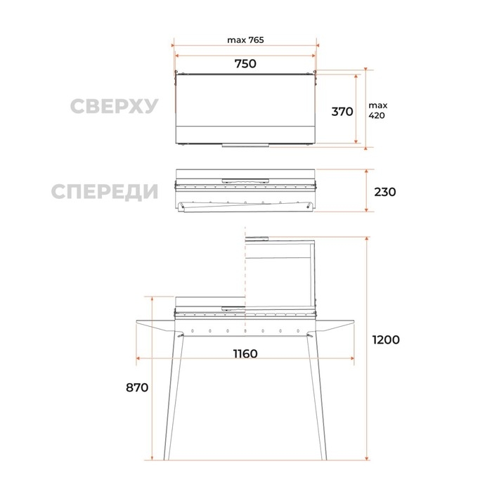 Мангал "Классика 750К" МКЛ 750К, 2 мм, 86 х 40 х 87 см