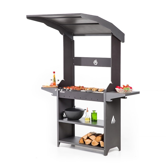 Мангал "Professional Standart Roof PSR3000" с крышей, 158,2 х 102,6 х 201 см, 3 мм, полки