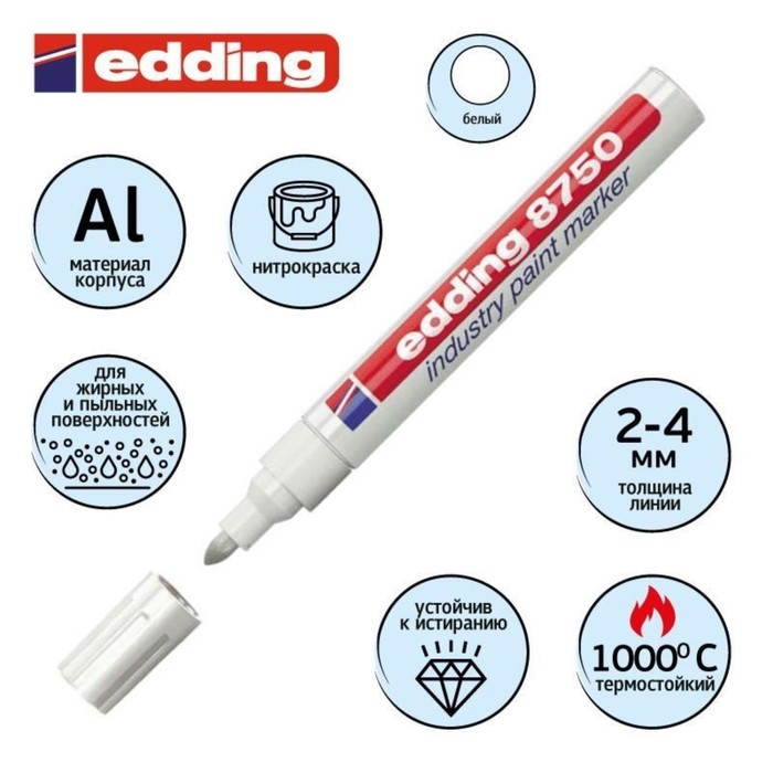 Маркер промышленный для жирных и пыльных поверхностей EDDING INDUSTRIAL Е - 8750/49, 2.0 - 4.0 мм, белый