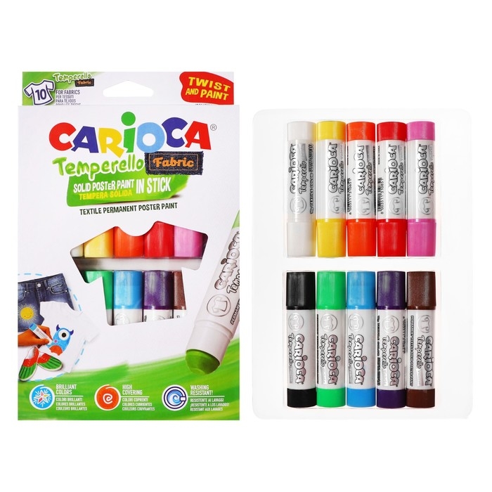Маркер - стики для ткани 10 цветов, Carioca "Temperello Fabric", яркие цвета, картон, европодвес