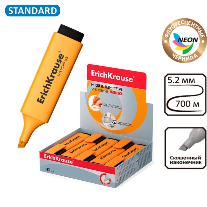 Маркер текстовыделитель 5.2 Erich Krause V-20 оранжевый