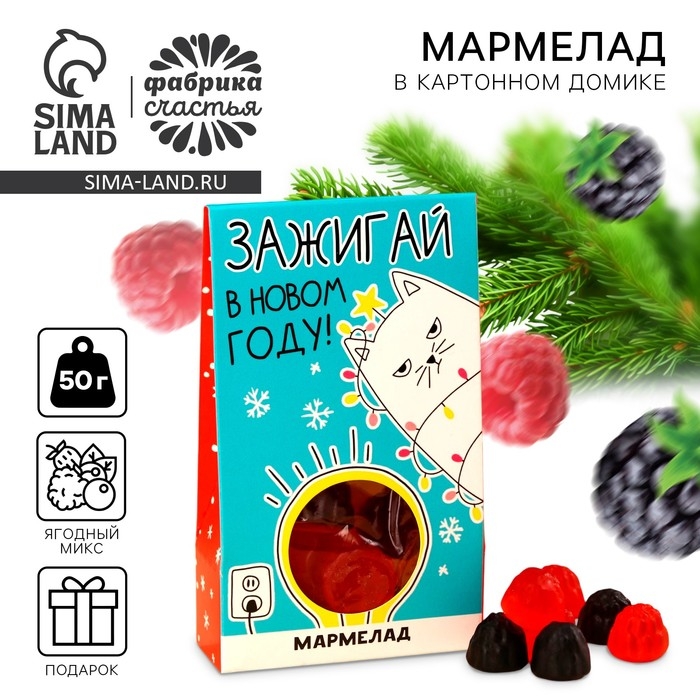 Мармелад в коробке «Зажигай в новом году» ягоды, 50 г.