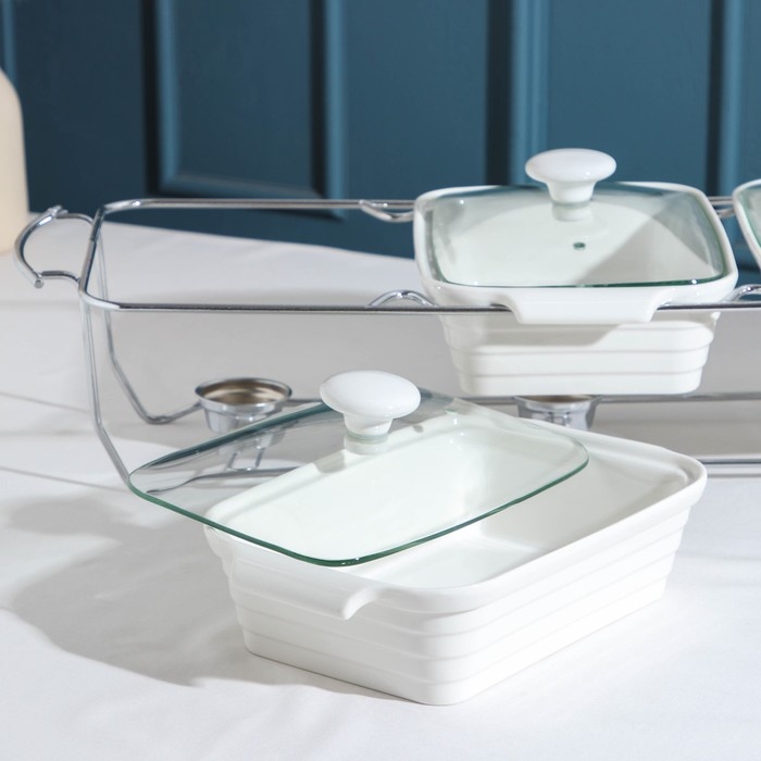 Мармит из жаропрочного стекла, 3 л, 44×25×17 см, с крышкой, на подставке