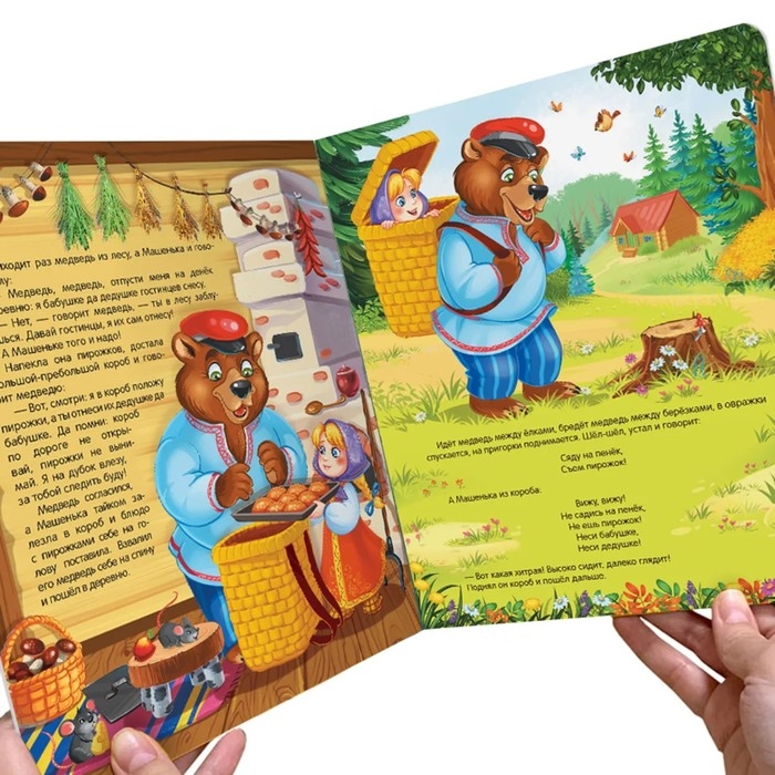 На иллюстрациях и в pop-up конструкциях перед вашим малышом оживет история про смекалистую Машу и сурового медведя. Читайте с ребёнком сказку «Маша и медведь» — переживайте незабываемое приключение!
