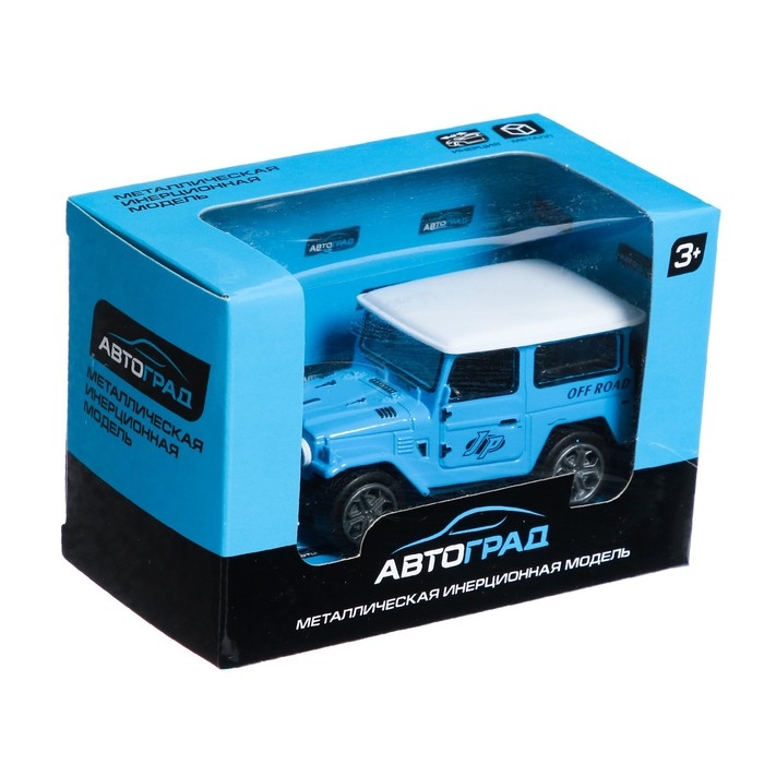 - Машина «Джип» имеет инерционный механизм. Чтобы привести в движение, достаточно толкнуть автомобиль. Игрушка мгновенно наберёт скорость и поедет под действием инерционного механизма.