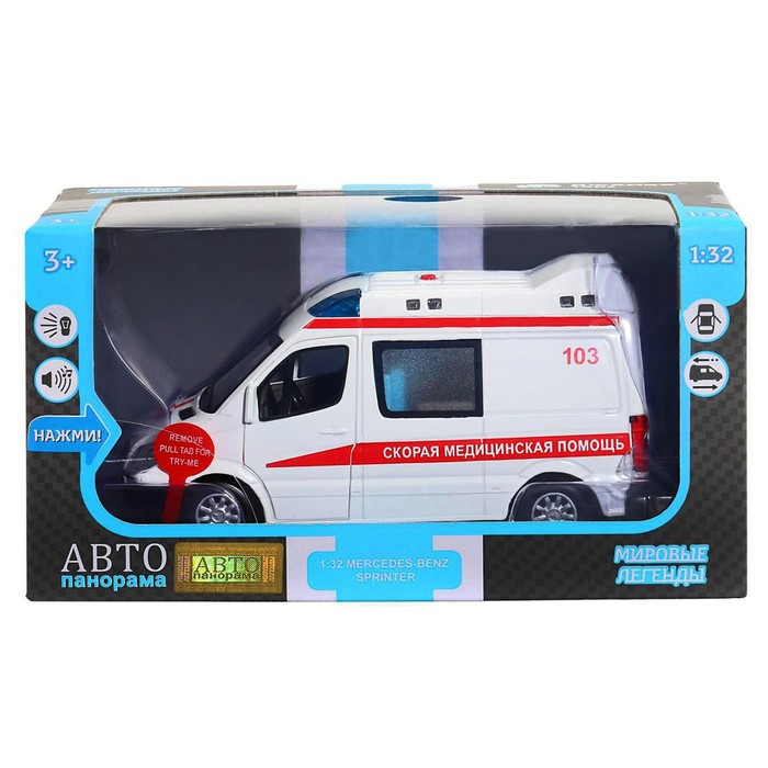 Машина металлическая «Mercedes Sprinter. Скорая помощь» 1:32, инерция, цвет белый, световые и звуковые эффекты