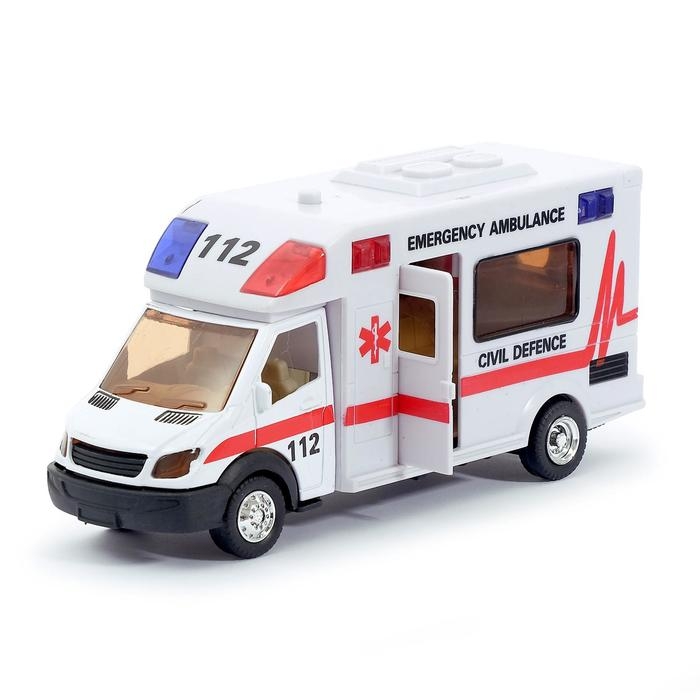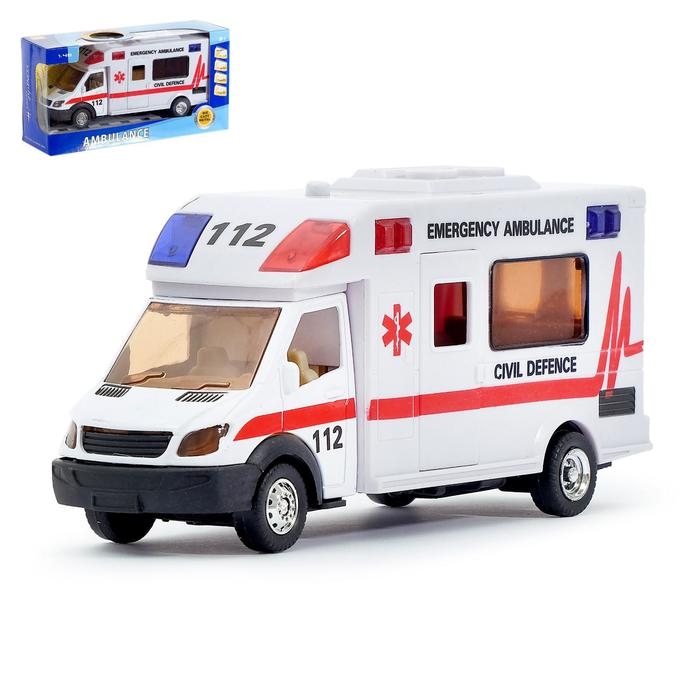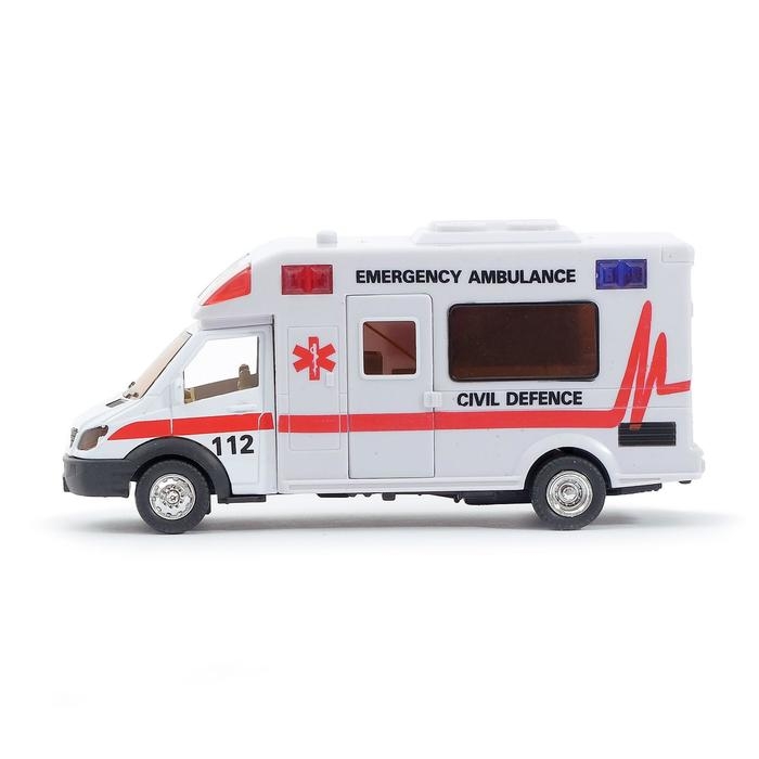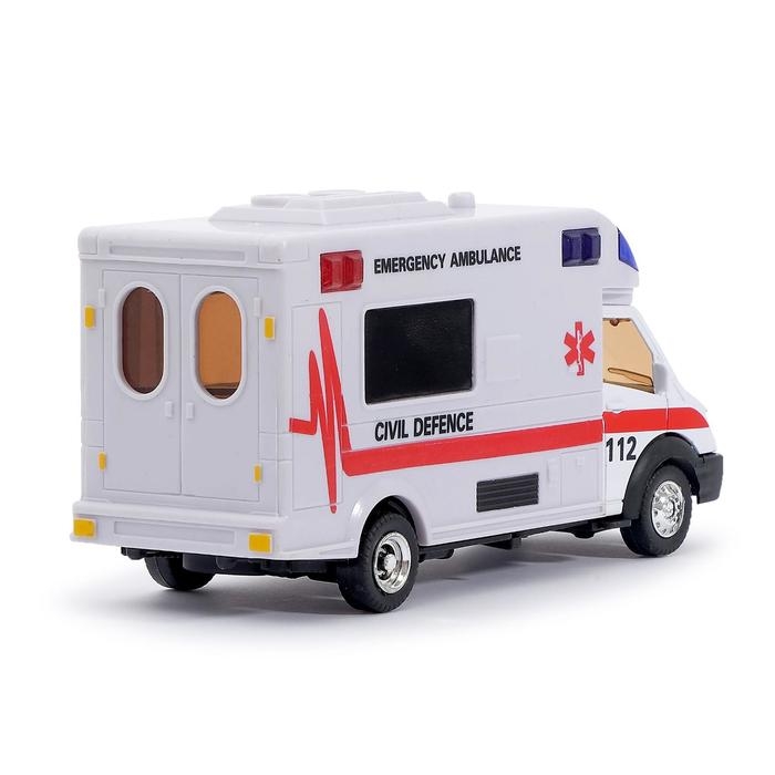 Машина металлическая «Скорая помощь», инерционная, световые и звуковые эффекты, масштаб 1:48