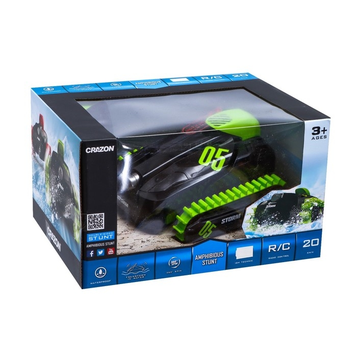 Радиоуправляемая машина-перевёртыш «Амфибия» способна проехать там, где для обычных машин дороги нет! Резиновые гусеницы и особая форма корпуса помогут преодолеть любые препятствия и даже плавать по воде.