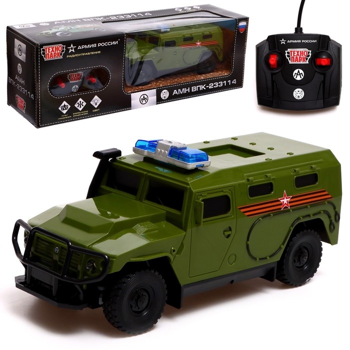 Машина радиоуправляемая «АМН ВПК-233114. Армия России», 21 см, свет, цвет зелёный