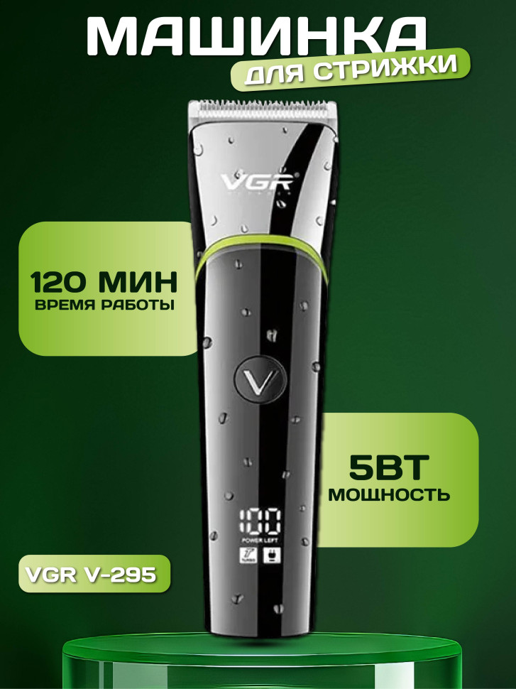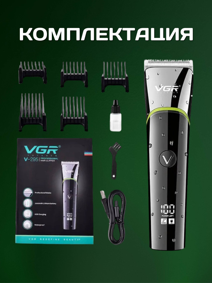 V-295 - профессиональный перезаряжаемый от USB аккумуляторный триммер для волос. В набор профессиональный триммер для стрижки волос входит 5 съемных насадок 4, 8, 12, 16 и 20 мм, масло для лезвий, USB кабель для зарядки, щеточка для чистки. Профессиональная машинка для стрижки триммер для стрижки бороды и усов - это универсальный прибор для короткой стрижки волос с острыми лезвиями из высококачественной нержавеющей стали. Работа от встроенного Li-ion аккумулятора. Индикатор питания оповестит, когда нужно зарядить машинку. Стильный и эргономичный дизайн. Триммер для стрижки бороды и усов имеет гладкую поверхность., приятно ложится в руку. Профессиональный машинка для стрижки триммер для стрижки бороды и усов отличный, незаменимый и очень стильный подарок мужчине на любой праздник и просто без повода.