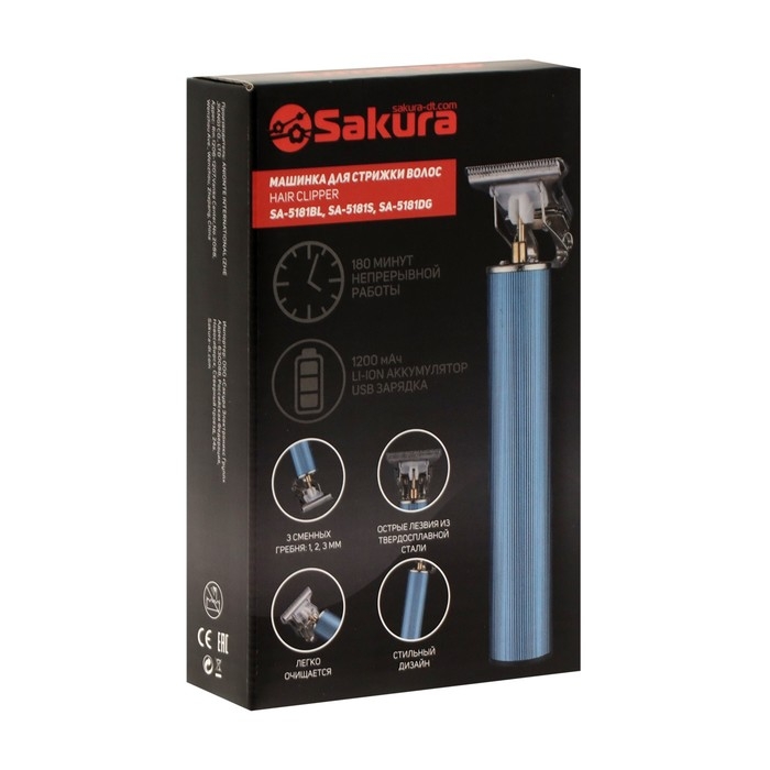 Машинка для стрижки Sakura SA-5181S, 3 насадки, стальной нож, АКБ, серебристая