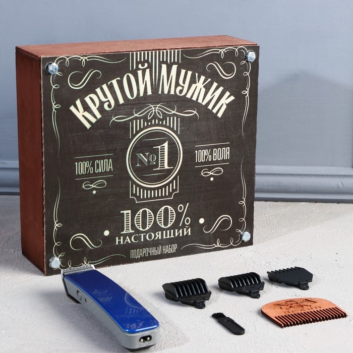 Машинка для стрижки волос, 3 насадки, подарочный набор «Крутой мужик», 9 х 18 см.