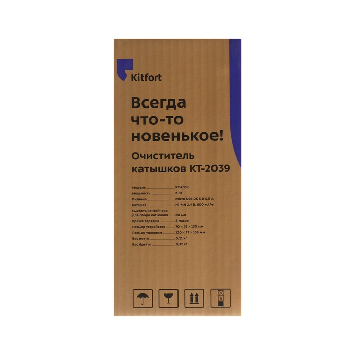 Машинка для удаления катышков Kitfort КТ-2039, 2 Вт, от АКБ, бело-сереневая