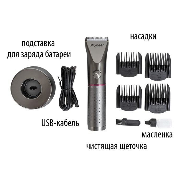 Машинка для волос Pioneer HC50RS, аккумуляторная, цвет серебристый с розовым