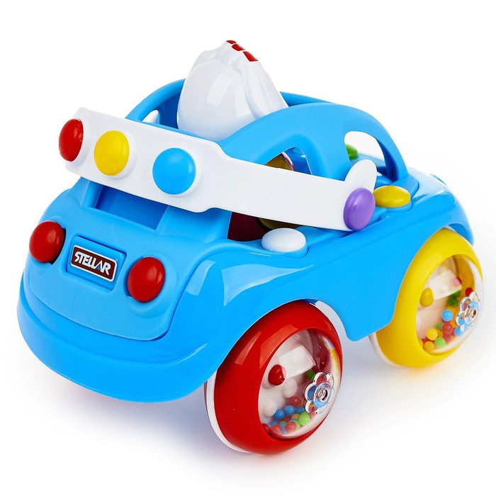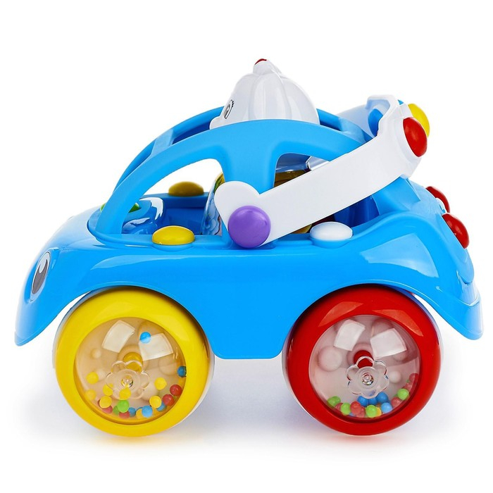 Эта машинка очень удобна для маленьких ручек. Малыш сможет легко брать её, катать по полу и переносить с места на место. Она идеально подойдёт для развлечений в доме или на улице.