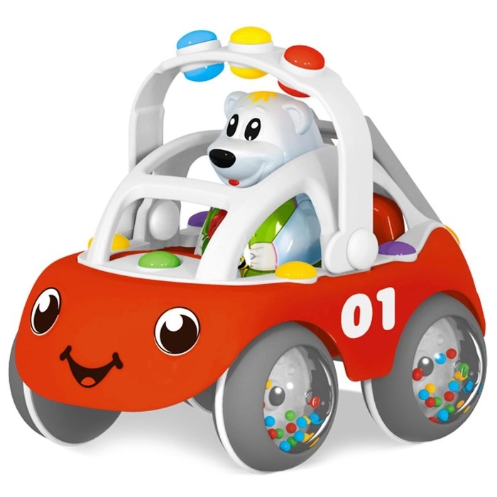 Особенностью этой машинки являются колёса, которые наполнены маленькими разноцветными шариками. Они приятно пересыпаются и издают мелодичные звуки, что привлекает внимание малыша и стимулирует его слуховое восприятие.