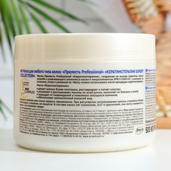 Маска для любого типа волос Прелесть Professional Кератинотерапия, 500 мл