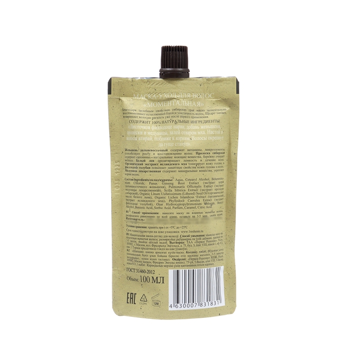 Объем маски составляет 100 мл, что позволяет использовать ее на протяжении длительного времени. Продукт не содержит парабенов и силиконов, что делает его безопасным для использования даже на чувствительной коже головы.