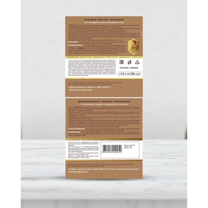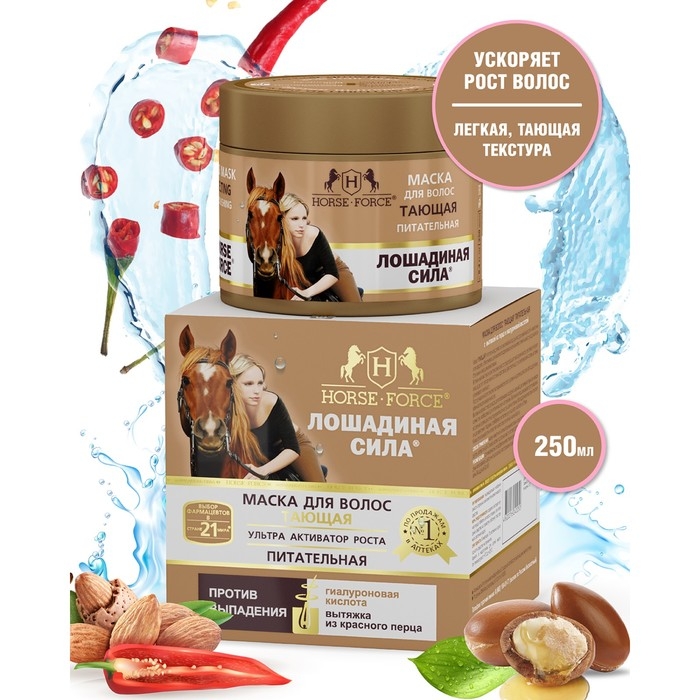 Маска для волос Лошадиная сила Тающая с вытяжкой из перца и гиалуроновой кислотой, 250 мл