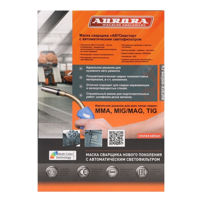 Маска сварщика Aurora A777c АВТОмастер, хамелеон, 99х45 мм, 9-13 DIN, TrueColor