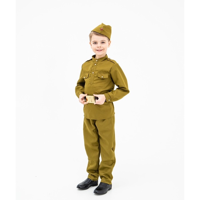Маскарадный костюм военного для мальчика с пилоткой,ремень,габардин,п/э,р-р 42,р.158-164