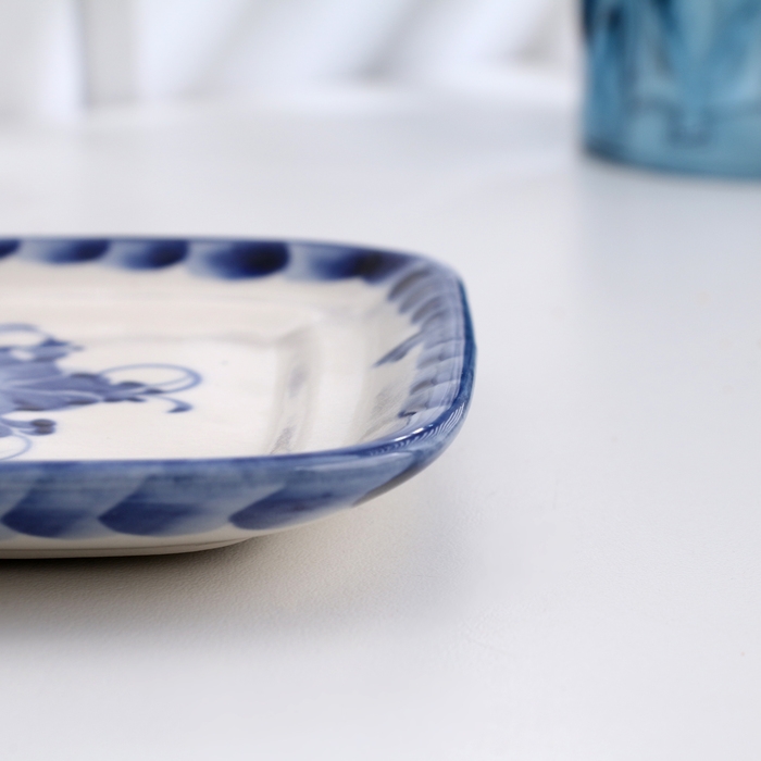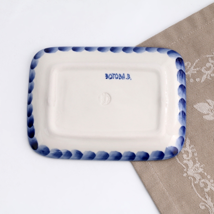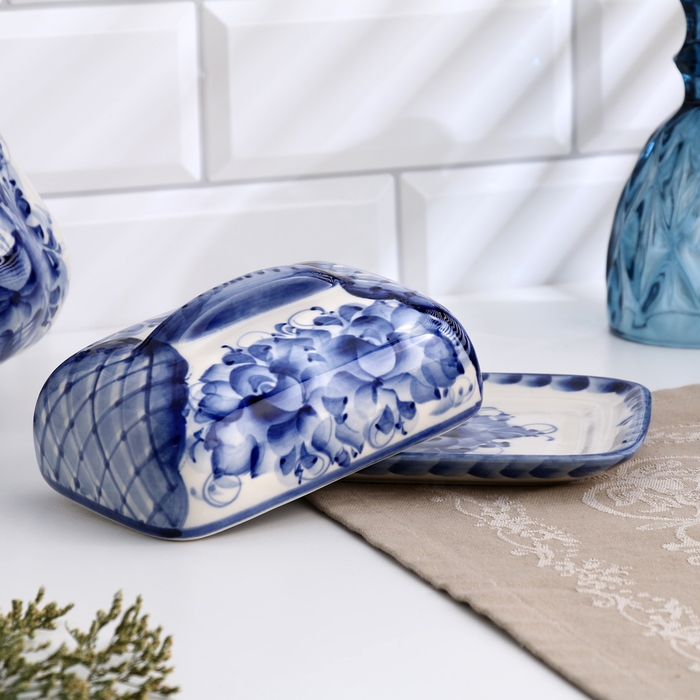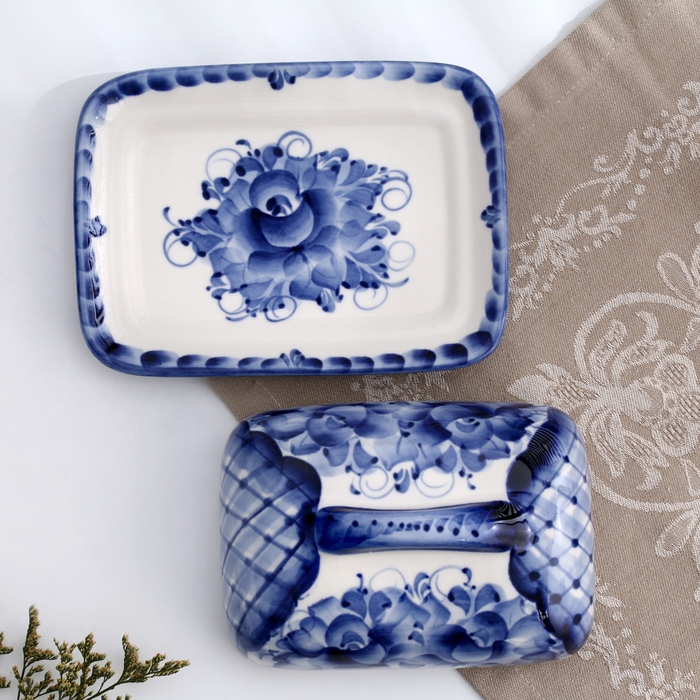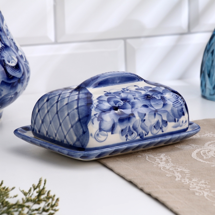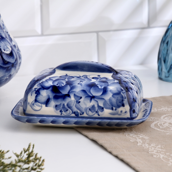 Маслёнка "Цветы", прямоугольная, 8 х 17 см, гжель