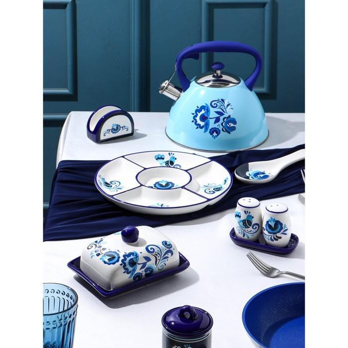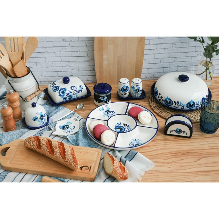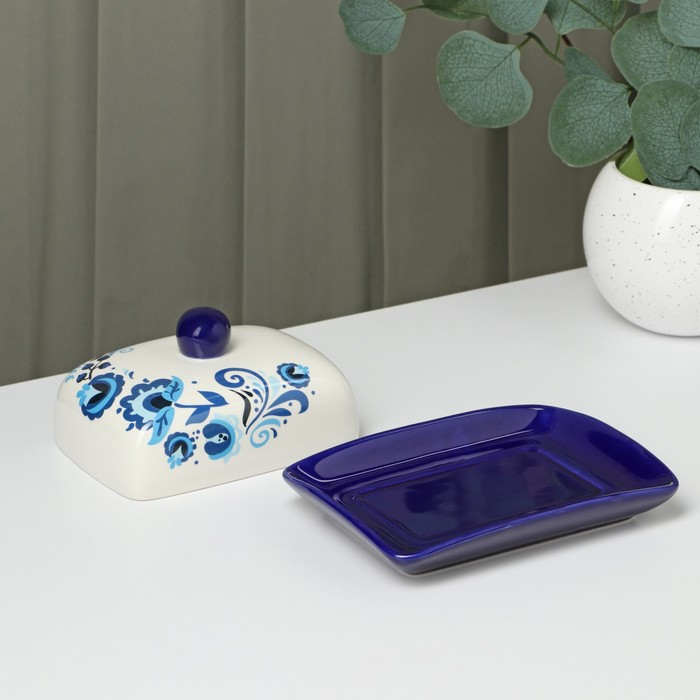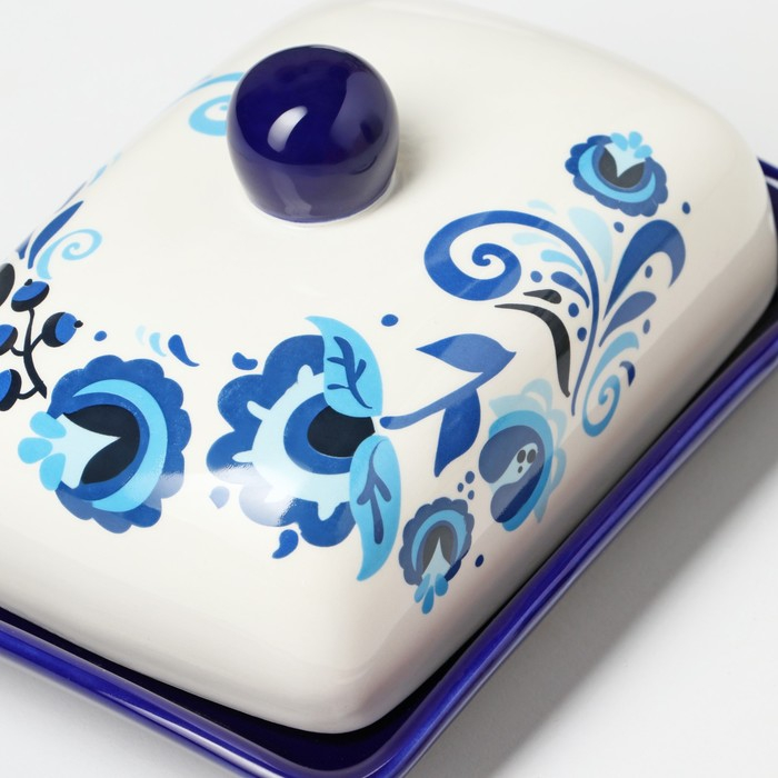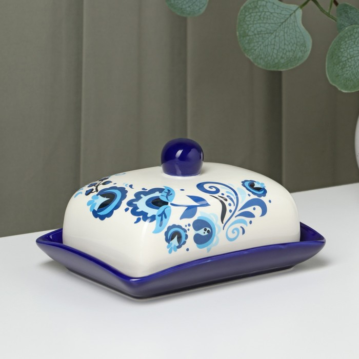 Масленка Риштанская Керамика "Цветы", 17 см, синий