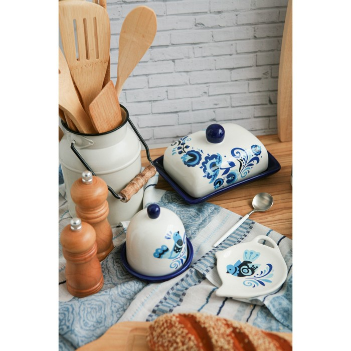 Маслёнка Доляна «Свиристель», 17×12,5×8 см, цвет белый
