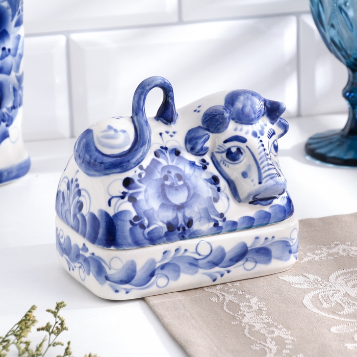 Маслёнка "Корова", гжель