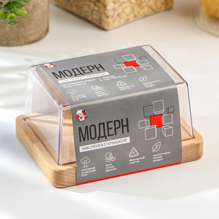 Маслёнка «Модерн», 14,5×11×7,5 см, цвет прозрачный