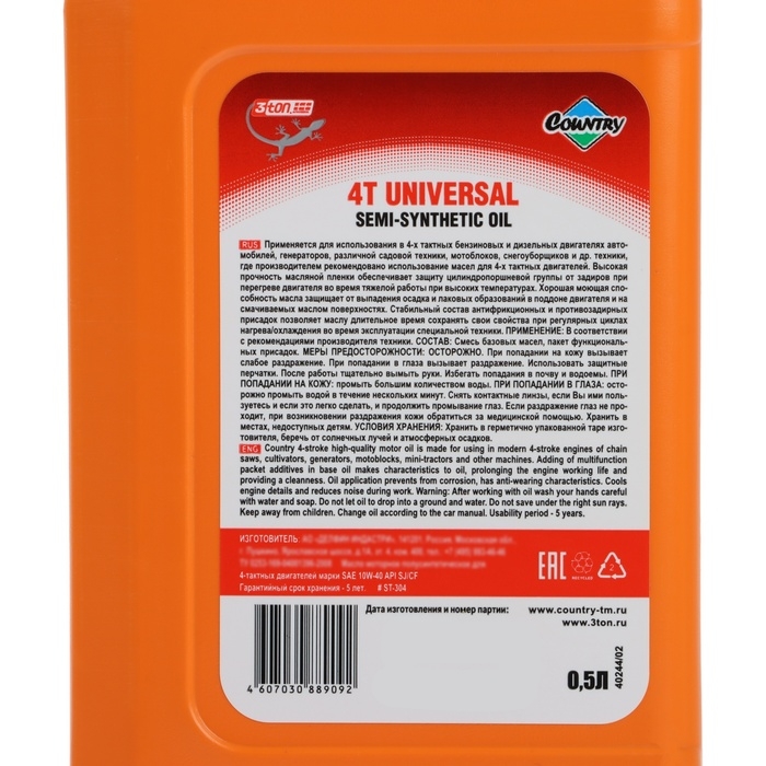 Масло четырехтактное Country полусинтетическое SAE 10w40 SJ/CF, 0.5 л