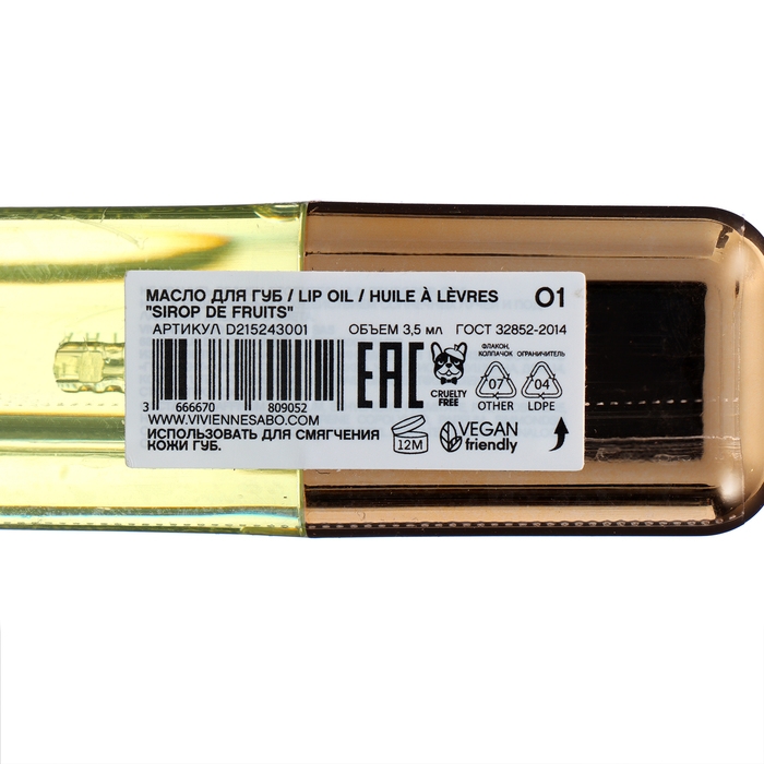 Масло для губ Vivienne Sabo Sirop de Fruits, тон 01 полупрозрачный жёлтый, аромат цитруса