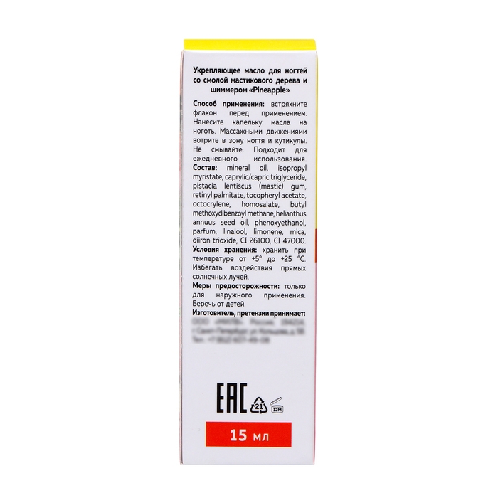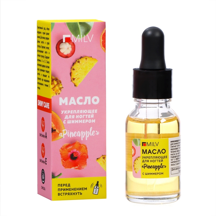 Масло для ногтей укрепляющее со смолой мастикового дерева и шиммером MILV ананас, 15 мл