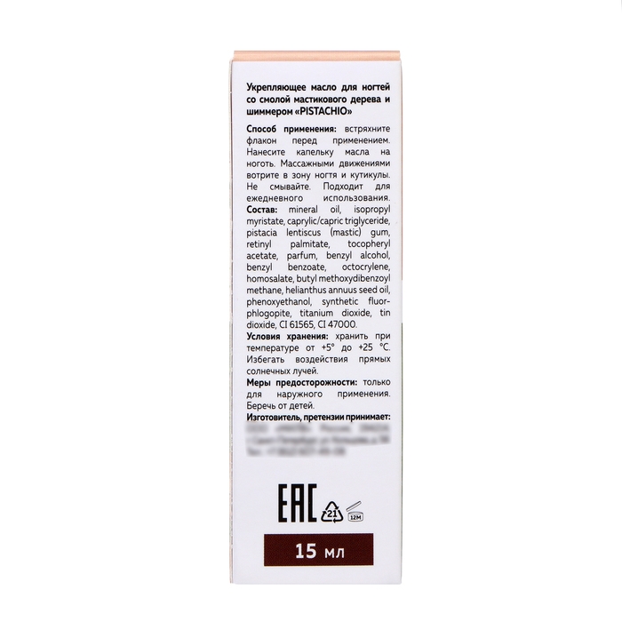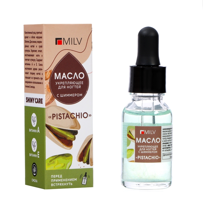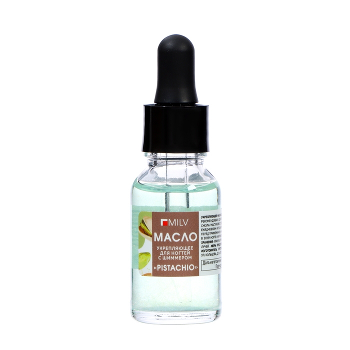 Масло для ногтей укрепляющее со смолой мастикового дерева и шиммером MILV фисташка, 15 мл