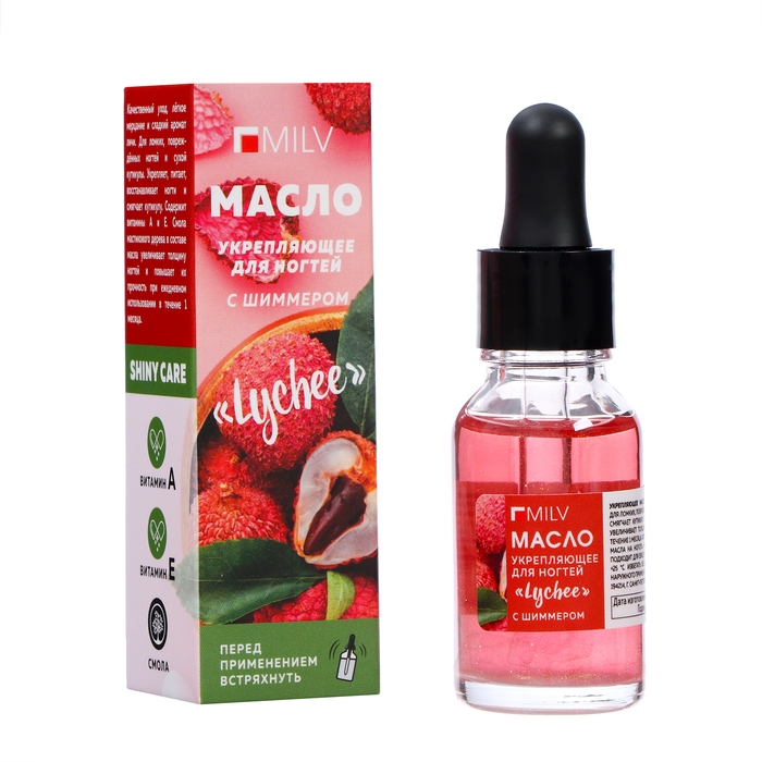 Масло для ногтей укрепляющее со смолой мастикового дерева и шиммером MILV личи, 15 мл