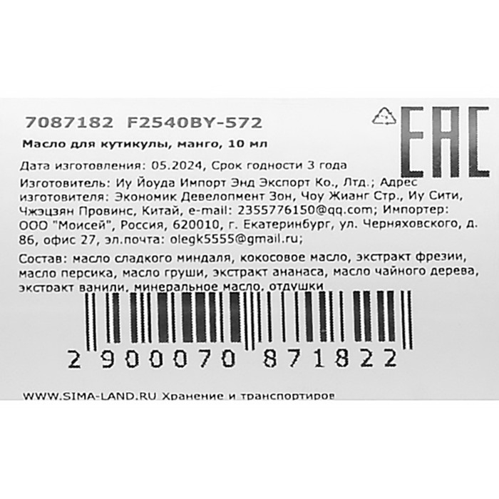 Масло для увлажнения и питания кутикулы 10 мл, манго